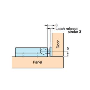The Sugatsune MC-37 push to latch/unlatch mechanism offers a strong retaining force with a floating strike that allows for easy alignment. Please note: for overlay doors, allow 3mm (1/8″) gap between the door and cabinet frame for push space. Pulling the door with excessive force without unlatching the unit may damage the mechanism.
